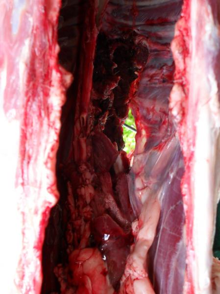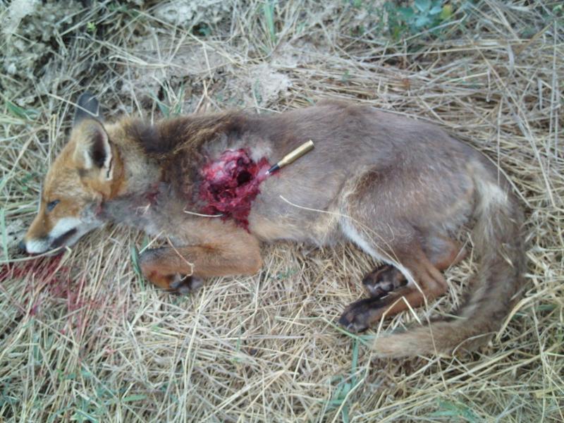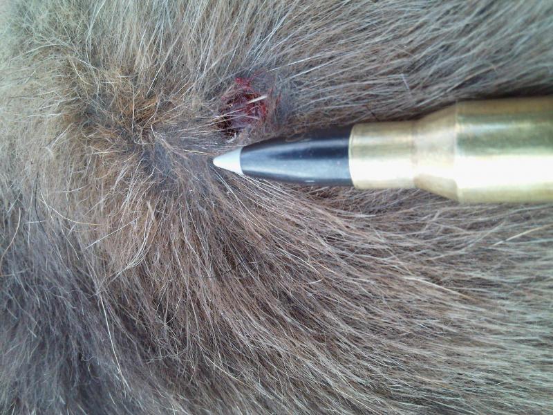 Tiro de través a pesar de la distancia y ser un animal pequeño y blando la bala ha desarrollado una buena expansión.