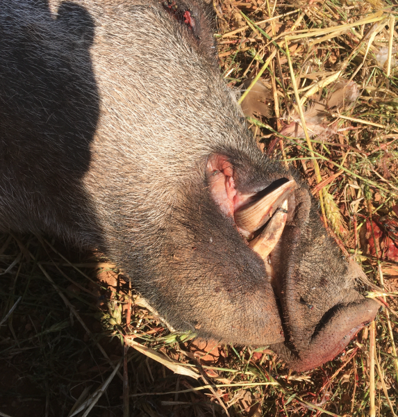 Acudo a vuestra sabiduría, a ver qué opiniones me podéis dar de este guarro abatido en espera por daños en las cosechas. Me parece que tiene la amoladora extremadamente grande, o el colmillo insuficientemente desarrollado, ¿qué opináis?