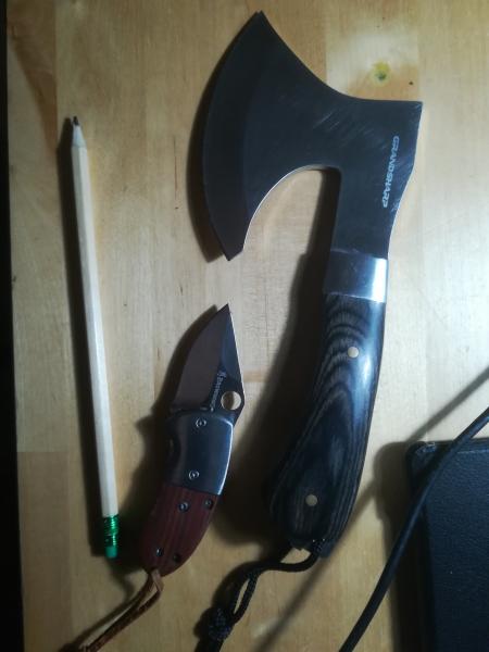 Trofeos con esa herramienta los saco yo, buscas el sitio, un buen giro y lo tienes, el hacha solo para los morros de los guarros, yo gasto una viejuna y pequueña pero muy bien afilada.