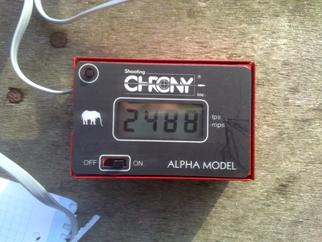 A las 16:00h. sin viiento he tiradeo una CBS Degol de 232 grains con 53,2 grains de pólvora y me ha dado una velocidad de 2.586 fps. o lo que es lo mismo 788,21 m/s.