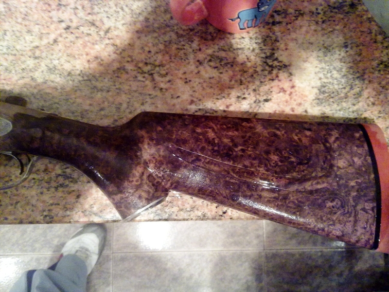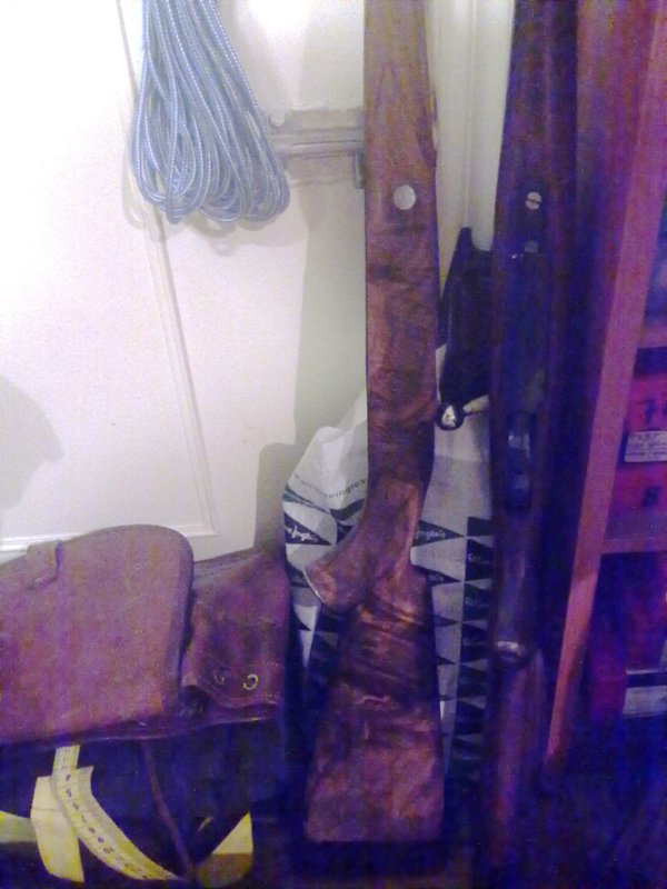 Estas son las fotos de la carabina de aire comprimido en proceso de fabricación. La censura me prohíbe poner ciertas cosas pero la madera cuando la mojas es de caerte de culo. Los grabados son Churchill y la matrícula es 577 N.E.: