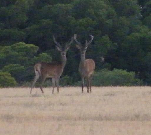 Es una porqueria de foto y de ciervos, pero me rei que no veas de las caras que ponian cuando me les hacercaba con los brazos en alto intentando hacerme pasar por un primo lejano
