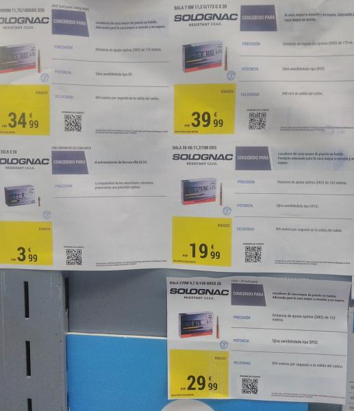 Acabo de estar ahí y desgraciadamente, parece, que se han decidido a vender únicamente su marca. Por lo que me comentaron, venderán otras hasta agotar existencias y a partir de ahí sólo Solognac, de la que se ha sumado .270Win. De los demás calibres por ahora no saben nada, si llegarán y cuándo.
