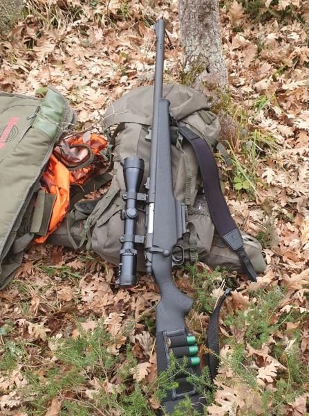 Dicho esto os pongo una foto de mi escopeta mossberg 695 con cañón rayado. Con munición slug subcalibrada no se sale del 8 a 100 metros, y es precisa a 150 m. Con suficiente fuerza y precisión como.para abatir cualquier pieza.