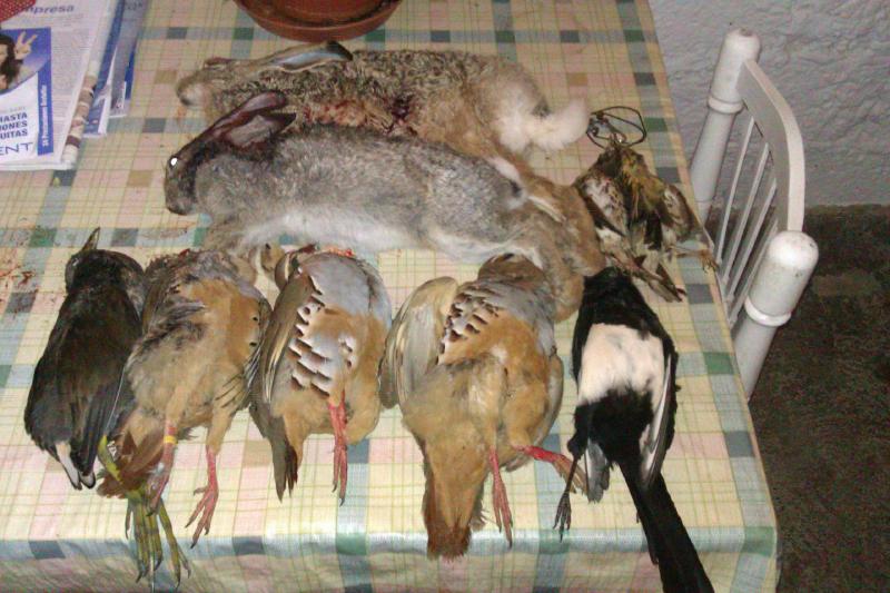 El resto de caza es la caza juntada entre mi padre y yo, que se colgó 3 perdices él solo y a mi no me dejó ni verlas