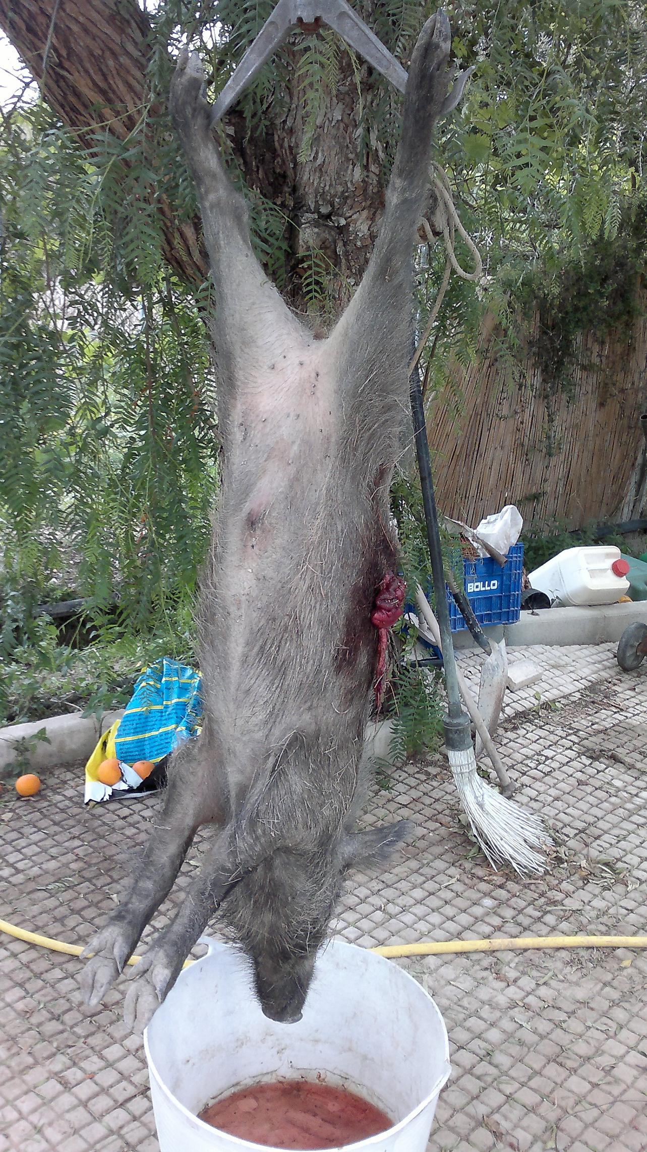 Os comento, voy a dar una vuelta a los cebaderos, con el fin de verlos y reponer un poco de comida, como no tenía nada mejor que hacer, después de cambiar cubos, limpiarlos, poner maiz, almendra, en fin arreglarlos bien para la campaña, pues hacía varios días que no los revisaba, una vez pisoteado todo el cebadero, decido sentarme un rato. Sobre las 22,00 horas, empieza la perritar a marcarme los olores del monte, yo pensando que venía un cochina con rayoncetes, pues el ruido era bastante grande. Ole sorpresa, 5 guarros buenos (machos y hembras), 1 guarra grande vieja -creo que bastante adelantada ya en su preñez- y un bicho con mas conchas que un saco de mejillones. Los dejo que se confien, buscando al grande que el cabroncete no salía del monte, sólo roncar y dejar que los otros se atracaran, en eso que localizo un segundo machete, ya cuando los tenía confiados veo al grande donde pensaba que podía tirarle, me lo encaro, enciendo luz y si quieres pies, menudo bufido y carrera, decido no tirar y esperar. Al cuarto de hora, nuevos ruidos y cochinos al cebadero, vuelvo a localizar a este machete y como el grande ya no volvía, pues le alivié de sus picaduras y miserias.