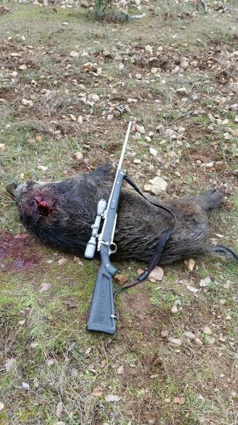 El viernes tres tiros, tres jabalíes, dos hembras y un macho con poca boca. :lol: :lol: