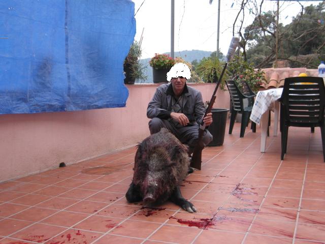 Con permiso de Agustin pongo una foto suya, con un cochino que no recuerdo lo que peso, pero si que tiene pinta de ser de los de 100kilos(el que tiene mas pelo
