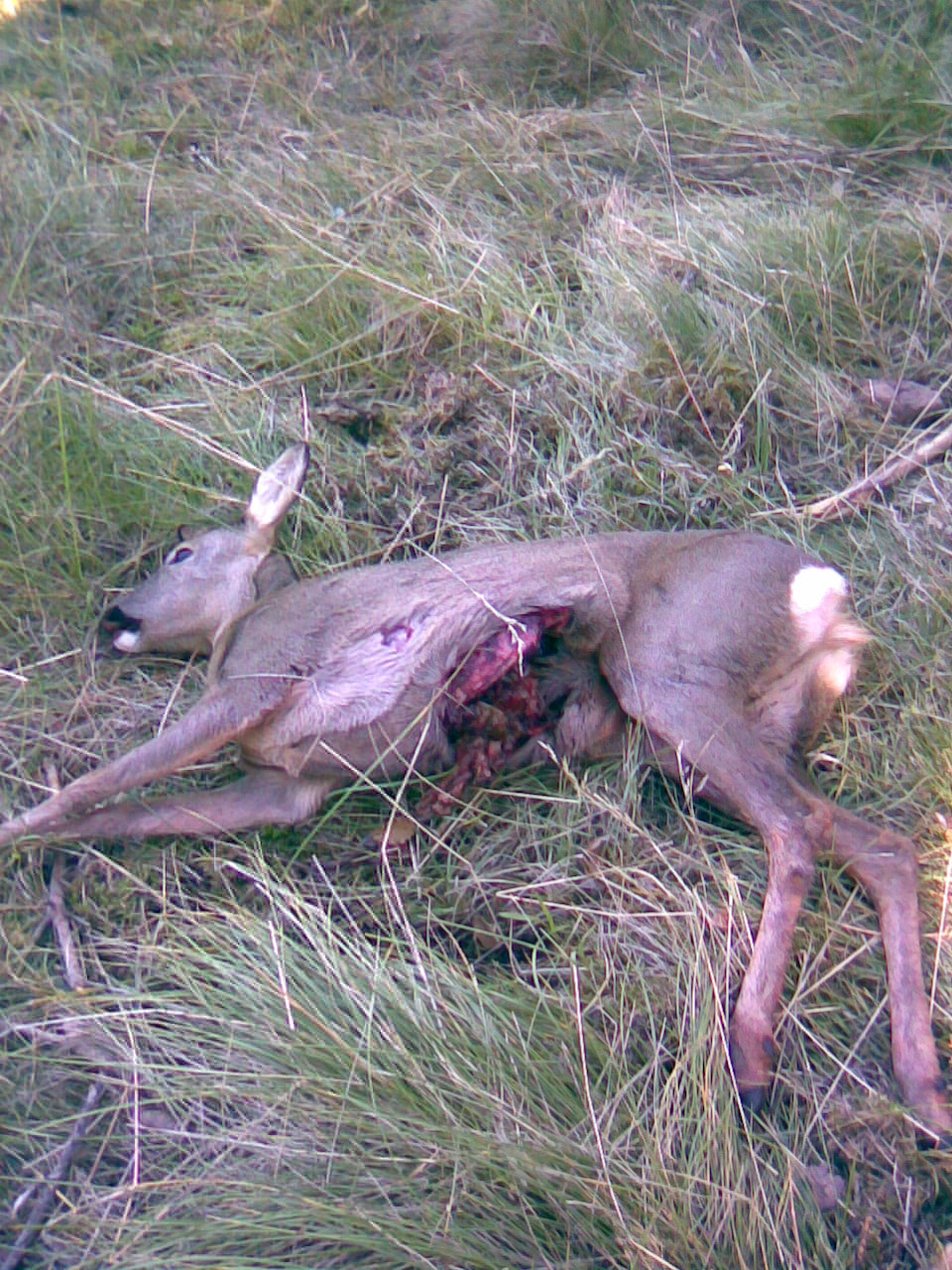 Aqui una corza que se tropezo conmigo, a 5 metros; cuando estaba resacando con el marlin 444 por "suerte" solo le pille las tripas...