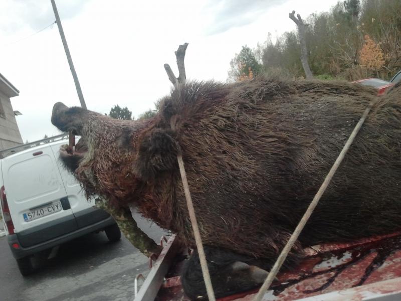 Buen jabali abatido hoy por el Norte en Galicia.Concretamente en Ourense,en una zona interior.Buen ejemplar,ya que no es zona de sierra