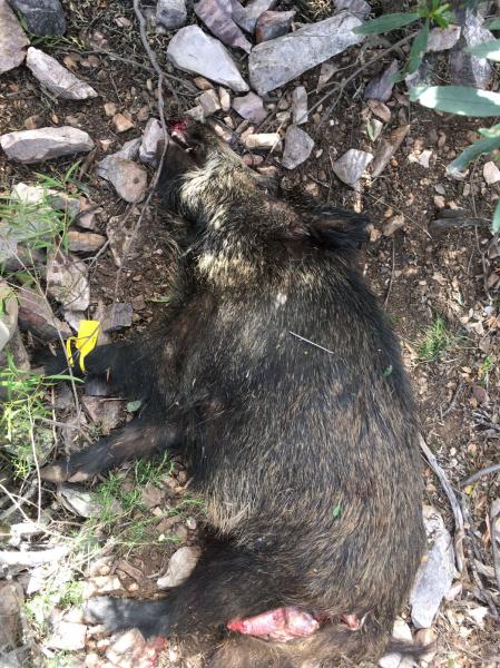 Martes cierre de la temporada. Un jabalí joven mañana fotos.el Maradona se portado. Desde que me acompaña y Yogi no lo toca, 6 tiros 6 piezas.