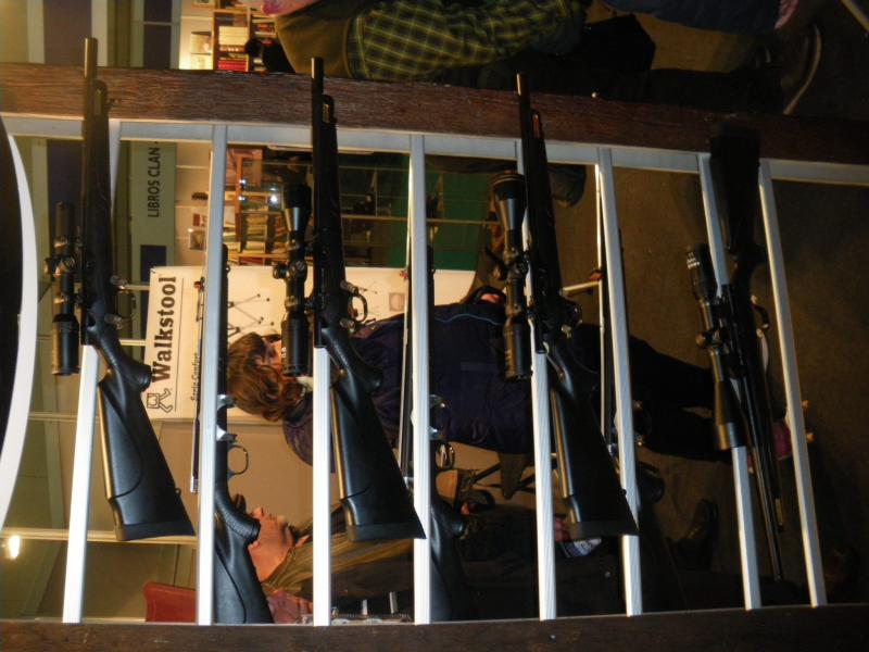Esta fotografía en la que se ve un caño de un fusil si os fijáis bien veréis un dispositivo en el que se aprecia un diopter y un punto de mira lo que compone un conjunto de miras cerradas para caza, a mi me gusto pero no se como de practico será pero tenia buena pinta.