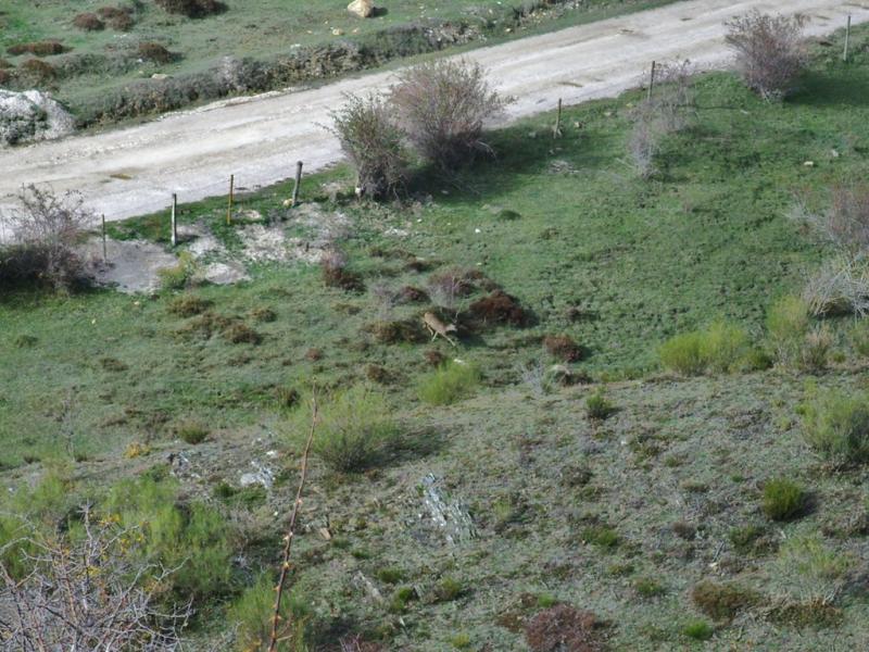 Al cabo de un rato, veo como sale un bicho que no me parecia ni ciervo, ni corzo ni nada por el estilo, mire por los prismaticos y para mi sorpresa era un amigo de caperucita