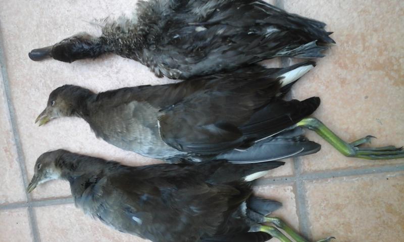 Percha de este sábado, solo dos polluelas y una cerceta hembra del año que se sumó a la fiesta.