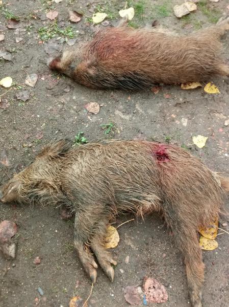 Dos gochetes, de como 30 kg. Otro irreconocible, pues los perros lo dejaron hecho girones