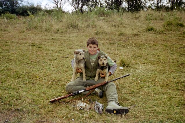 Mirad que foto he encontrado, es de cuando tenia 12 o 13 años, y mirad que percha, una torcaz y unas cuantas codornices, y con mis perras