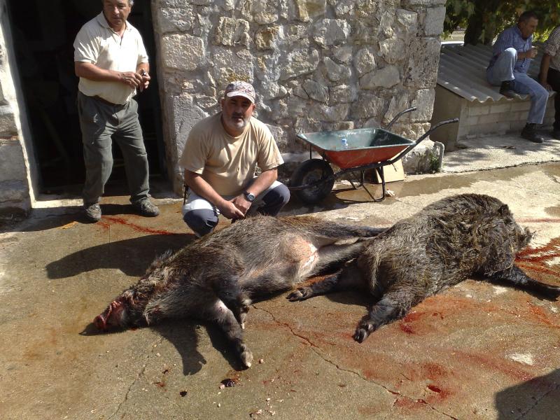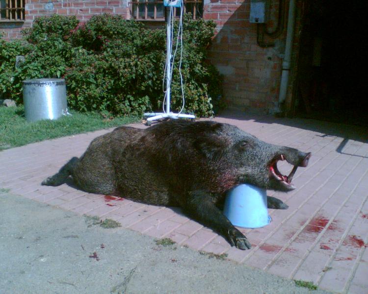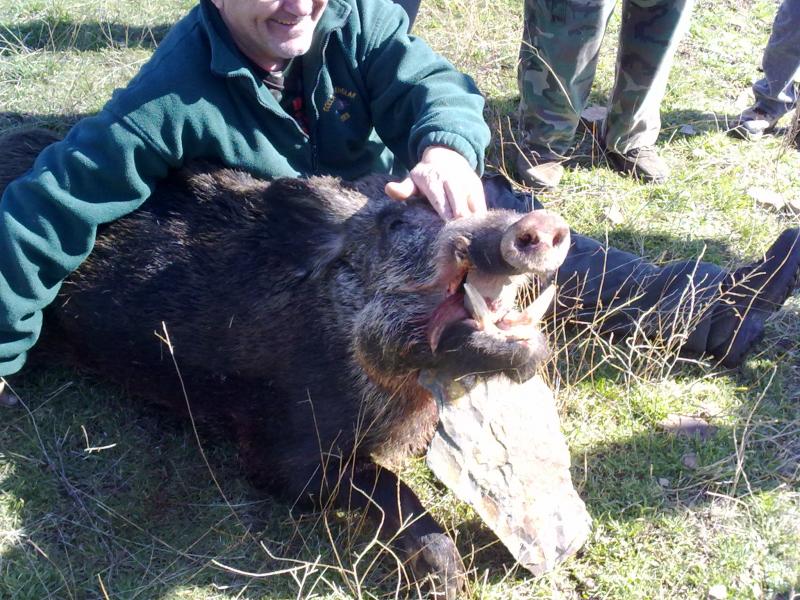 Este se mató en Roses, Girona, lo mató el compi Felipe con tres tiros de un 30-06, de los cazadores de por allí, es él de colmillos mas grandes que se recuerdan, el cerdo era de unos 80 Kg, pero ya se le veia viejo, se nos habia escapado una vez, pero esta, no, parece que fue medalla de oro, según dijo.
