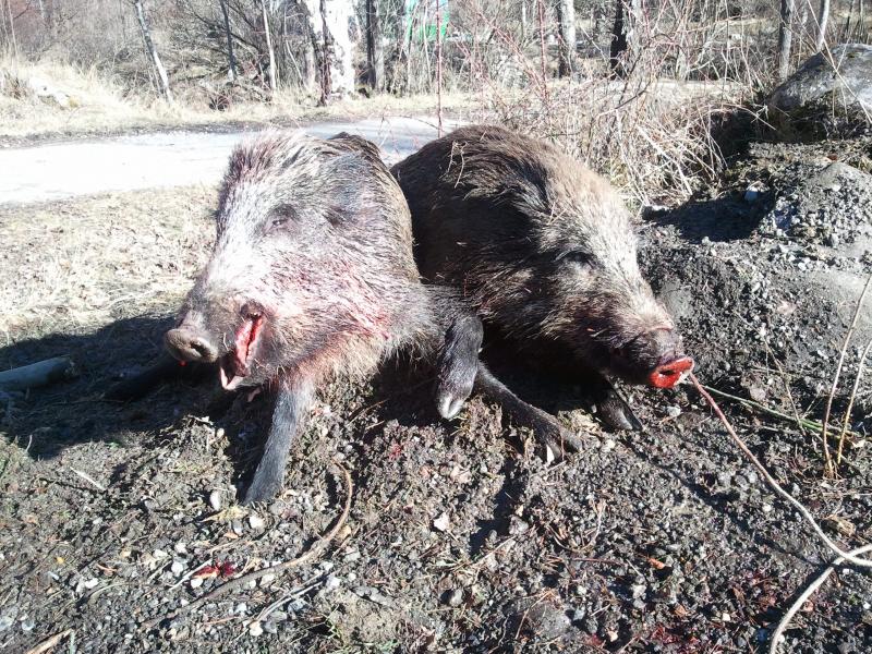 Hola, aquí os presento a las dos "cerditas " que ha abatido el mas veterano de la cuadrilla en su primer día de caza de esta temporada.