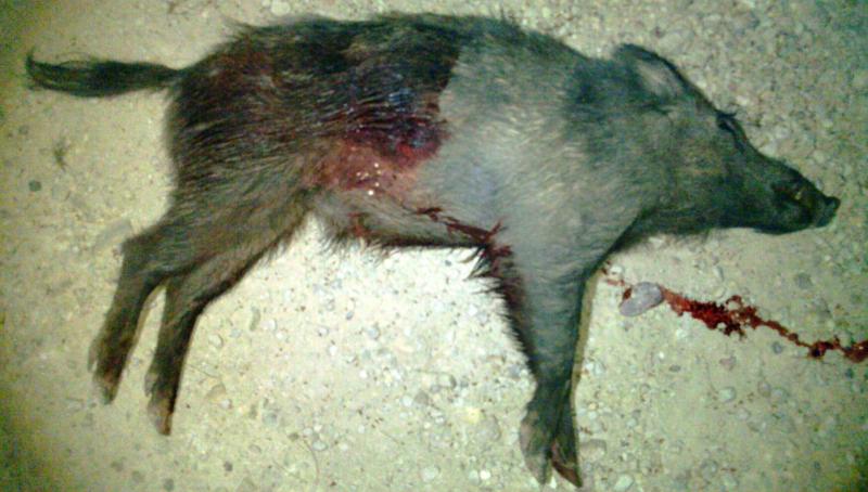 Exceptuando mi primera salida, hecha la noche del día 2 de abril, en las otras tres siempre he podido disparar a un jabalí.