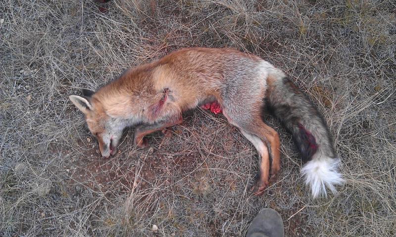 El puesto era en la orilla de un barranco controlando todo el barranco y la ladera de enfrente, y vi a unos 150 metros como bajaba el zorro barranco abajo hacia mi, lo deje cumplir y cuando lo tenia a unos 10-12 metros hice tronar mi 9,3, y el zorro cayó desplomado sin enterarse de nada.