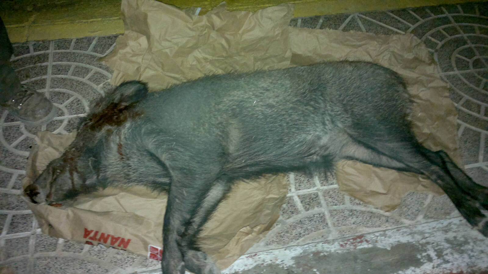 Tras 3 esperas fallidas anoche por fin cayó, un jabalí macho de mas de 60 kg el lance fue muy bonito.