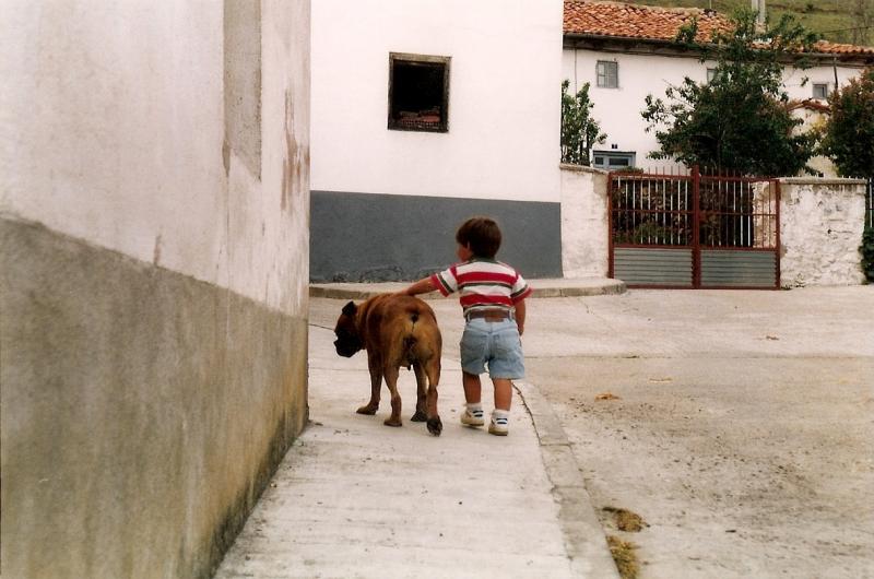 Aquí con Nani, la boxer, fijaros en la diferencia de tamaño, y la perra era bastante grande: