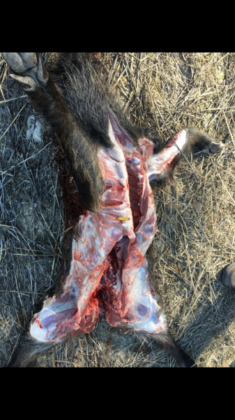 Enhorabuena, -los tiros "trperos " son malos y feos, pero hay una zona delante de los jamones que suele ser fulminante o casi, es la que acomoda a los riñones, si se los alcanzas no suelen cominar ni mucho ni rapido.