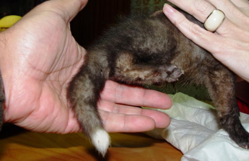 Esta madrugada he vuelto a comprobar que se ha creado un vínculo de dependencia, tanto de él hacia mi y hacia mi esposa, como de nostros hacia él. Esto se basa en un hecho concreto constatado repetidamente: Alrededor de las 8 ó 9 de la mañana es su hora de jugar, de hacerse acariciar y de dormir entre caricias y calentito. A esta hora todavía estamos en la cama, porque alrededor de las 4 es su hora de tomarse un buen biberón. Pues bien: Cuando llega su hora de jugar, parece hacerlo como si yo fuese su madre; también juega a morder (tal vez para ejercitar sus mandíbulas y endurecer sus encías con sus dientecillos). Cuando lo he vuelto a dejar sobre la almohada, sin mi contacto directo durante un par de minutos, se echa a llorar y hasta a berrear como un bebé humano. Basta entonces volverlo a coger y ya está feliz.