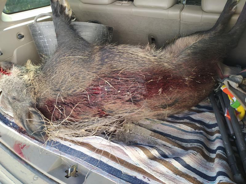 Esta le tiré por la noche y la saqué al dia siguiente del zarzal donde calló. Va entera para embutido.