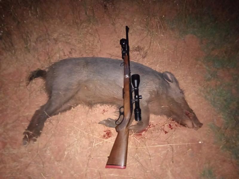 De muestra... un botón, anoche los busque en las higueras, que festival de bichos, porque tengo curtido el cuerpo si no hago una pila, pero esa no es mi forma de cazar, los deje entrar ... parecían trituradoras a motor, como corrían para llevarse el trofeo antes que el otro, vi muy lejos un par de ellos que por el cuerpo me pusieron algo cardíaco, me costo mucho tirar por que no paraban de andar y tire uno al cruzar de la higuera a los frutales, tire mal casi sin apuntar pero.... la bala llego y llego al sitio tan rápido que no escuche el zoppp, el 222 es un diablo, tiro 55 Gr contra un bicho de unos 90 kilates y pudo el pequeñín.... una carrera de unos 30 metros y ..... aquella mata no estaba antes allí .... y tanto como que era el guarro, grande macizo tierno con dos dedos de grasa sin prácticamente trofeo pero... siguen alegrando la vida y la mesa .....