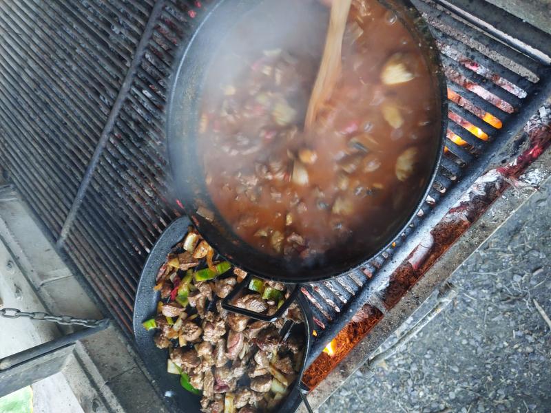 Hoy hemos hecho carne fiesta con jabalí y un estofado de carne mechada con corzo, que ha servido de base para unas fajitas con queso de tetilla y salsa guasacaca...no tengo palabras :homer: