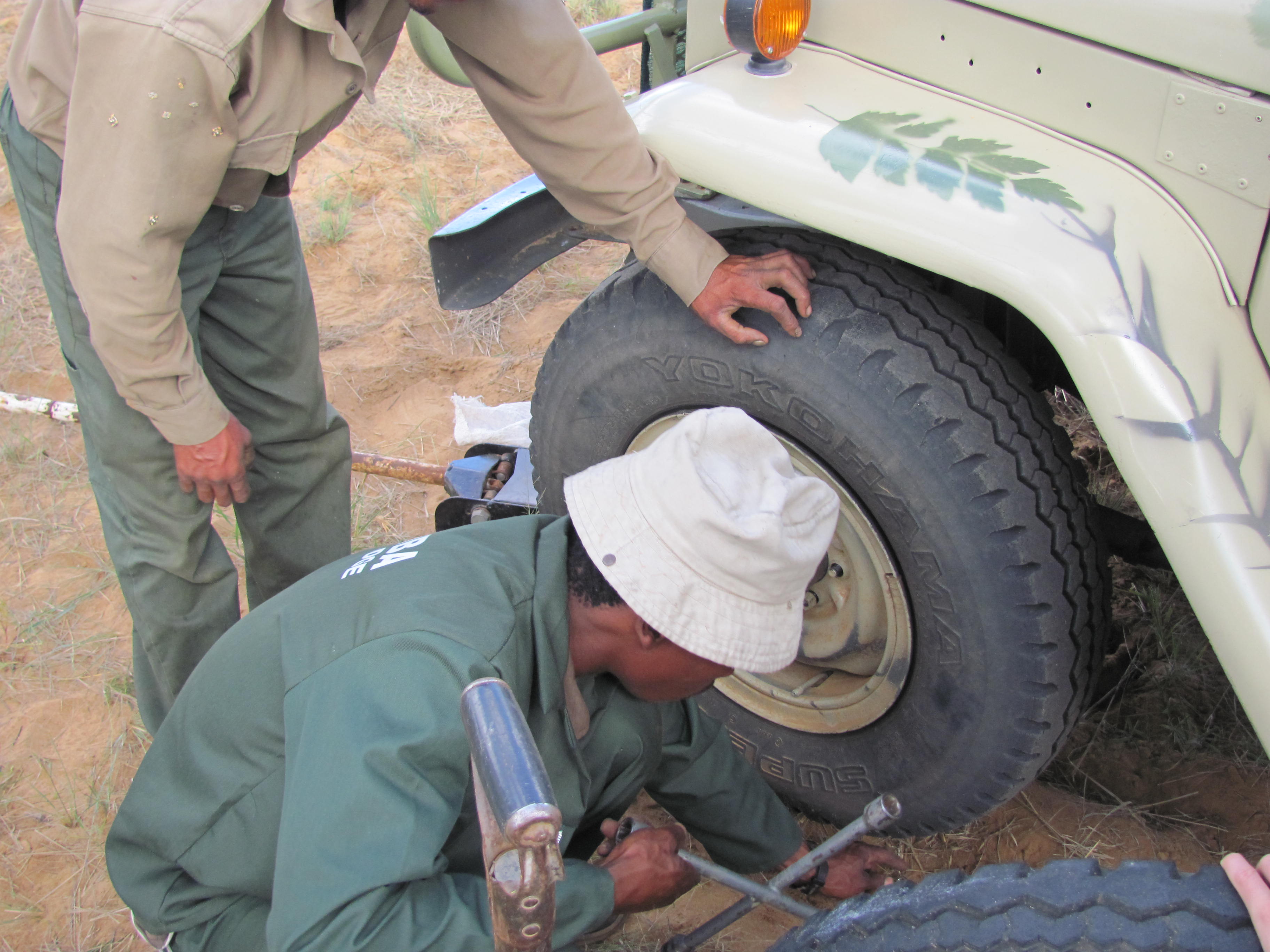 Pinchazo del la rueda; se repara y a seguir cazando.