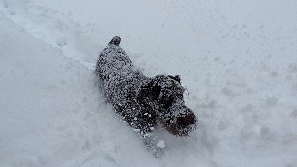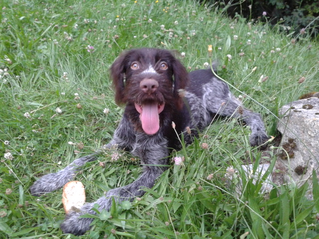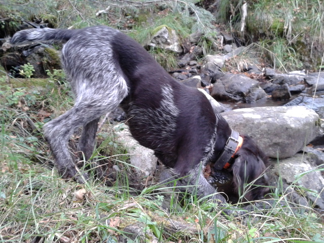 Años atras , en los 90, tuve una Deusch Drahthaar muy parecida en careto y disposicion de manchas, aunque en negro, a este cachorro. Aun me acuerdo mucho de ella pues la crie un poco juguetona y aparte de la caza, tambien me hacia compañia en el trabajo en el campo y nos pegabamos alguna batallita jugando pues era fuerte a cojones y yo entonces mas joven. Lo que si era es un pez, estaba mas rato metida dentro del agua que fuera, tanto en invierno como en verano. Vicho que caia al agua alla que iva pero cuando llegaba a la orilla estaba medio destrozado pues era muy fuerte de mandibula. Cuando nadaba parecia que tenia motor pues tenia la cola cortada y la parte que le quedaba la iva moviendo mientras nadaba y parecia que era la elice. Ahora estoy sin perro pues cazo poco, me dedico mas al tiro de avancarga, y mi intencion es no tener ningun otro perro y espero que no me ofrezcan ningun cachorro de drahthaar por que soy capaz de caer. Buenos recuerdos de ese animal en particular y eso que he tenido muchos perros.