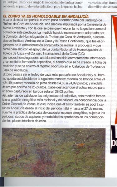 Parece que tenemos parado el Hilo de los Raposos, en Trofeo Caza Mayor he encontrado este articulo que me viene al pelo sobre lo que comentábamos sobres los Zorros " Carboneros" en la foto en cuestión se aprecia bien la diferencia entre uno y otro, a mi al ver esta foto me da que pensar que a muchos nos habrán pasado cerca en los puestos o en un rececho y no le hemos disparado confundiéndolo con el color de un perro... no sé es la sensación que me da. Por otro lado el articulo informa de la inscripción como trofeo del Zorro en Andalucía en el CIC desconozco si en alguna otra comunidad existe esta posibilidad pero... ahí esta, el periodista insinúa que el considerar trofeo homologable puede ayudar a su control como predador.