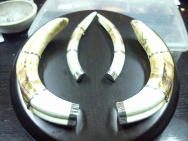 El otro particularmente me parece mucho más bonito que el mio, pues aunque ( metro en mano) es algo más pequeño, su simetría y geometría es perfecta, sin nungún síntoma de desgaste o rotura, vamos que es un faco de libro. Además se da la circunstancia que era el primero que mataba en su vida su cazador, de ahí la cara de satisfacción de éste, llegando en su euforia ( comprensible), a poner la gorra en la cara del faco para que constara en la susodicha foto el nombre de la empresa de caza en Kimberley. Particularmente ( anque lo respeto ), soy poco amigo de estas cosas, más bien me gusta tratar al animal con el mucho respeto.