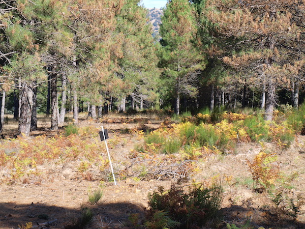 Están a 40 metros y entre la broza y los troncos de los pinos no veo ni orejas ni Cristo que lo fundó. Joé que vista tiene el chaval. Ah! ya las veo.