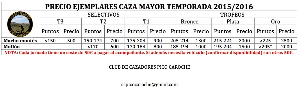 Desde la sociedad de cazadores Pico Caroche, tenemos disponibles precintos de Muflon y Cabra Montesa. El coto es limítrofe con la Reserva Nacional de Caza de la Muela de Cortes.