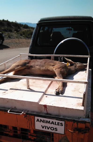 No sé no sé.... pero ese remolque con el cartel de animales vivos.... La corza no parece estarlo ¿no?