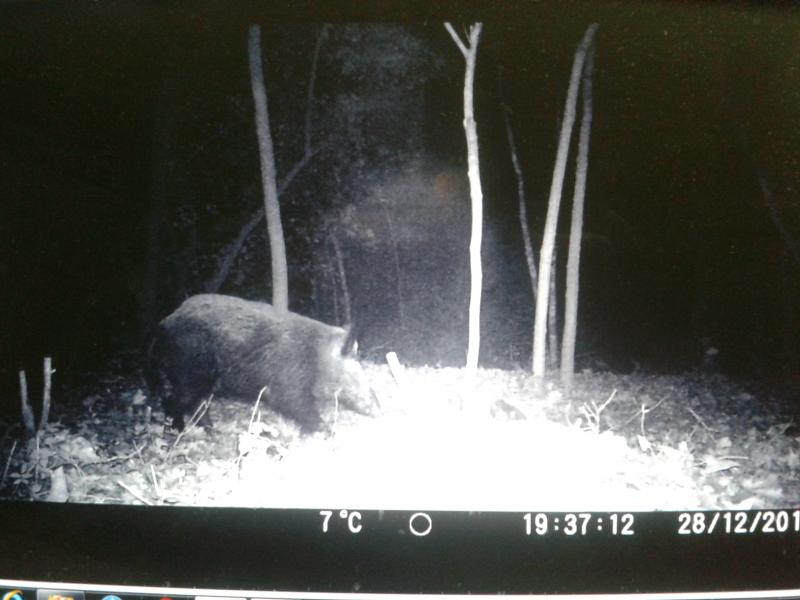 Esto es una foto del video, el video no lo puedo colgar porque pesa mucho, en el video se ve mejor pero para que te hagas una idea, este jabali esta muy mosqueado pero no se entero de que estava la camara.