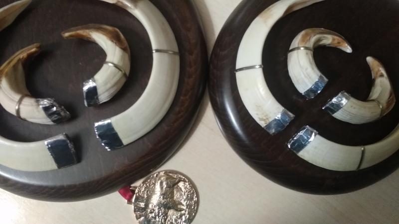 Hola donde puedo encontrar lo que se pone en la tablilla para adornar los colmillos de jabalí, que es plateado en la base de los colmillos y luego como alambre para fijarlos a la tabla