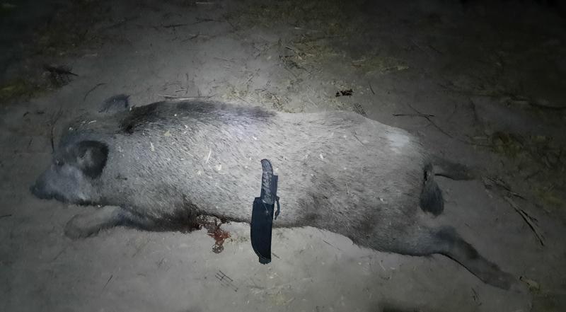 El cuchillo que va fijo en el lateral de mi mochila es el Kabar Mark1, mango de "goma", no hace falta ni mas grande ni mas pesado, para abrir el externón, eviscerar, desmontar patas delanteras y traseras, lomos, solomillos,...