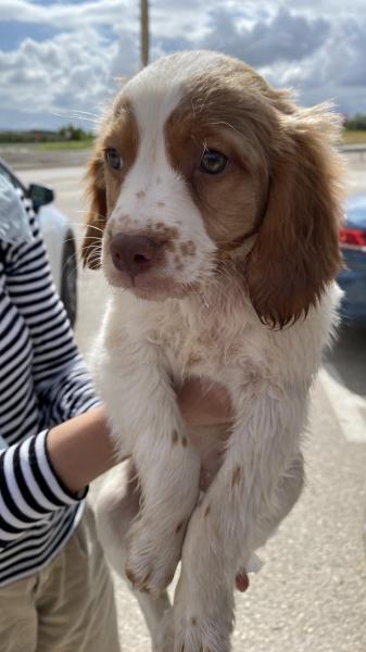 Pues ya la tengo, una bretona Preciosa de dos meses y parando con el conejo Mini de mi hijo