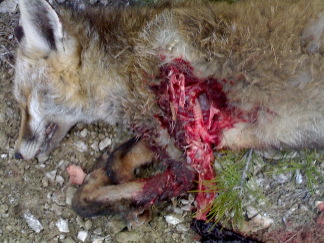 El Año pasado un Banda organizada de Zorros de " Camaron" se dedicaba asaltar la Paridera de ovino de un amigo después de 12 Bajas entre los " Ternasquicos" y tras dos visitas de los APN nos dieron un autorización para esperarlos que poderles presentar nuestros respetos a modo de 150g a 883m/s eso es muuu mala Virgen debajo dejo el resultado... continuara.