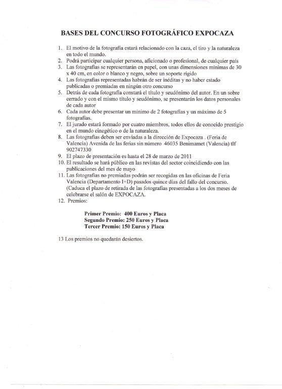 La 1ª edición de Expocaza Valencia (del 1 al 3 de abril en Feria Valencia) acogerá también un Concurso Fotográfico, con suculentos premios económicos para los ganadores. En la imagen adjunta podéis ver las bases del Concurso: