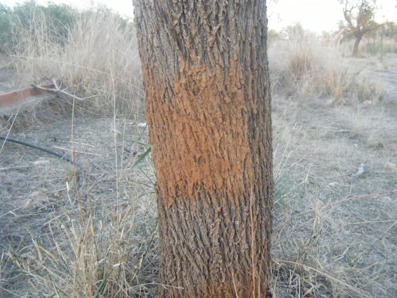 Por ejemplo, estas fotos de unos rascaderos de jabali en troncos de almendros que voy a poner: