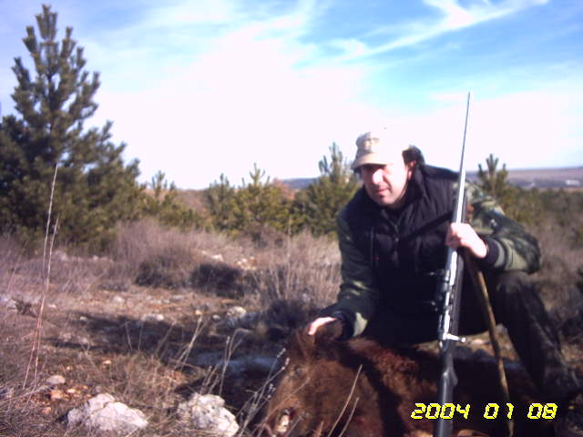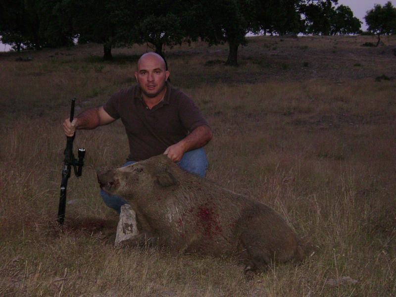 En mi caso fue el sábado pasado en una montería en Guadalajara. Una chochina de unos 40 kilos, me entró de frente y la abatí a unos 30 ó 40 m con una carabina Ruger del 44 Rem. Mag. La punta usada fue Hornady XTP de 240 gr., entrando el proyectil por la frente del animal. Hizo mucho destrozo en la cabeza: el agujero de entrada parecía de salida del boquete que abrió, el ojo izquierdo se salió literalmente de la cuenca, colgando del nervio óptico y la masa encefálica quedó reducida a una papilla. Al abrir el animal observé que la bala también partió algunas vértebras del cuello, atravesó el corazón y finalmente quedó atrapada entre la piel y el costillar tras partir una costilla. No pretendo recrearme en los aspectos más desagradables con esta descripción, simplemente contar los daños causados por si a alguien le puede resultar de interés. El animal ni se enteró.