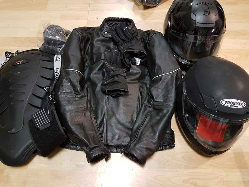 Cambio material motero, cascos bluetooth, chaqueta de cuero, guantes etc