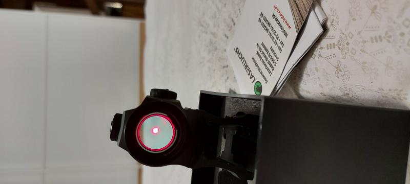 Se me olvidaba..viene con dos monturas..la alta que se ve en la foto..y una más baja..para poner en escopeta o rifle..la alta es para ponerlo en plataforma tipo ar15