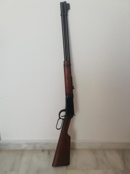 Cambiaria rifle palanquero Winchester original modelo 1894 calibre 30-30 usado con cargas reducidas en galeria un par de veces, con dies nuevos, vainas sin usar y funda de transporte.