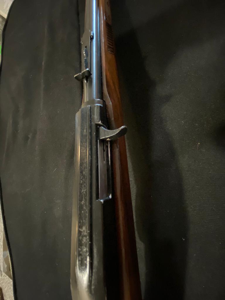 La carabina tiene bastantes años ya y tiene sus marquitas y arañazos. Tiene el taco del retroceso recién puesto, una pieza diseñada e impresa en 3D. Para automatizar correctamente recomiendo Winchester Laser o similar.